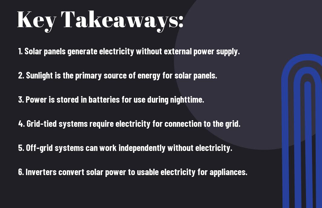 Presently, you have learned that while solar panels generate electricity from sunlight, they do not actually require electricity to function. Solar panels operate by converting sunlight into usable electricity through photovoltaic cells, making them a sustainable and environmentally-friendly energy source. By harnessing the power of the sun, you can effectively produce clean energy to power your home, reducing reliance on traditional fossil fuels and contributing to a greener future.