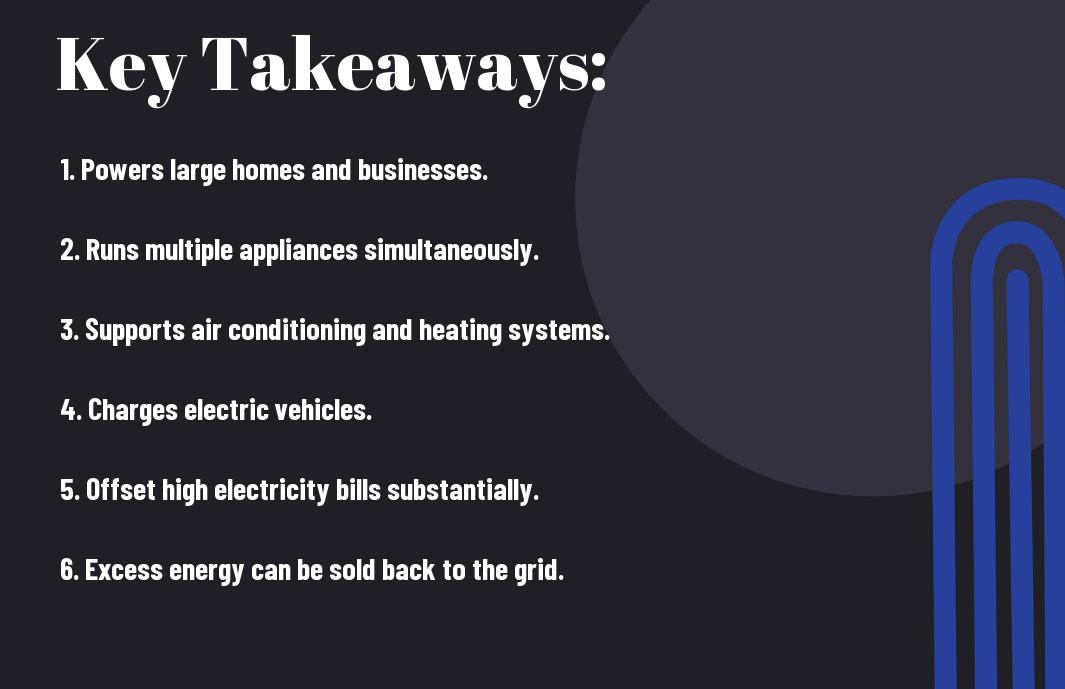 It’s time to uncover the true power of a 10000 watt solar system and what it can do for you. With this robust system, you’ll be able to run multiple appliances in your home, such as refrigerators, televisions, lights, and even some larger appliances like washing machines and air conditioning units. Imagine the possibilities of generating your own renewable energy and cutting down on your electricity bills. Let’s look into the list of what you can power up with a 10000 watt solar system.